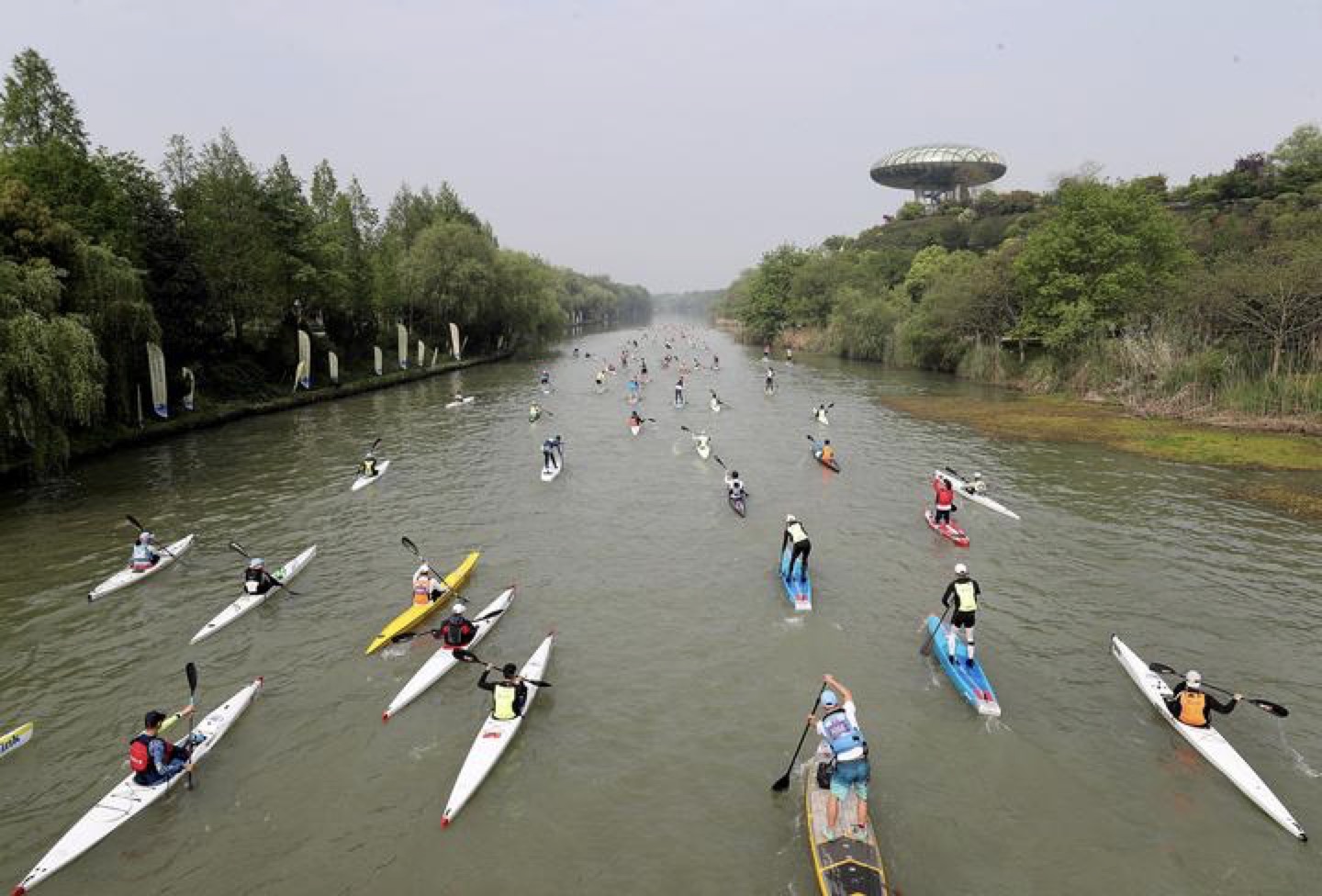 尊龙首届杭州西溪湿地皮划艇桨板马拉松挑战赛分全马组(42公里)、半马组(21公里)、SUP桨板半马组(21公里)三项专业竞技赛事项目。当天共259条皮划艇,138块桨板参加挑战,运动员总计男子组297名选手、女子组100名选手,都是来自全国各地的皮划艇爱好者。本届比赛从坐落在西溪天堂栖悦城的“西溪湿地江南体育水上运动中心”出发,一路经过绿堤、朝天暮漾、莲花滩等水域,运动员在比赛的同时,还可以欣赏到西溪质朴的自然景观、深厚的人文积淀和丰富的生态资源。